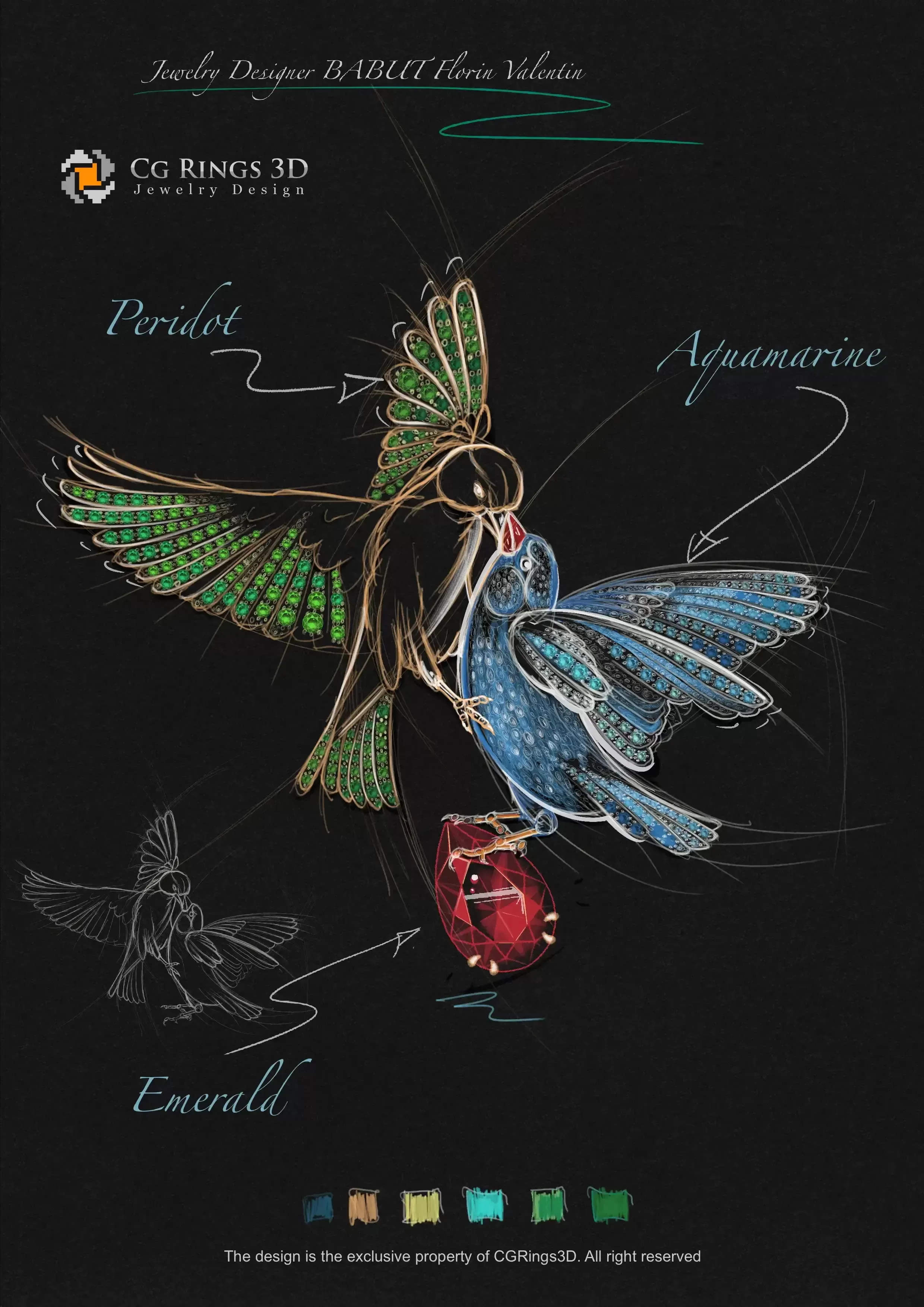 BROCHE Oiseaux - Joaillerie Design 3D