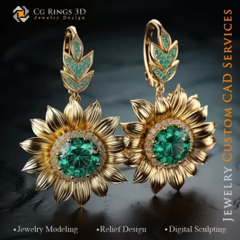 Sunflower Earrings - Jewelry 3D